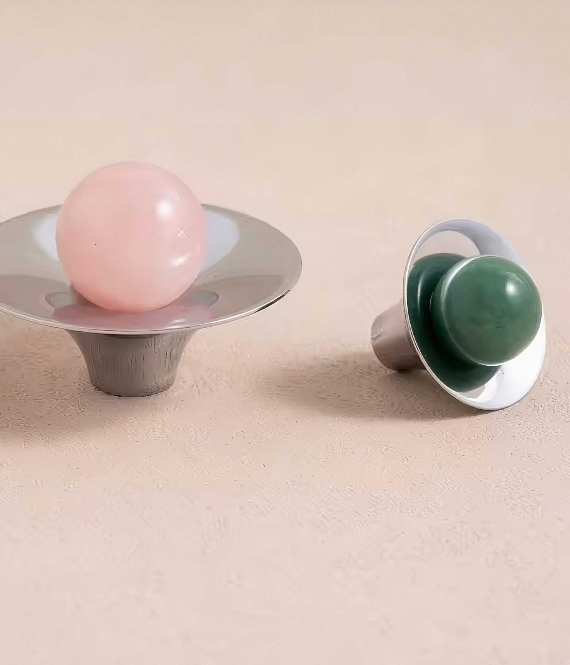 Atomic Style Silver Chrome and Gemstone Drawer Handle: Mid-Century Modern Cabinet Pull