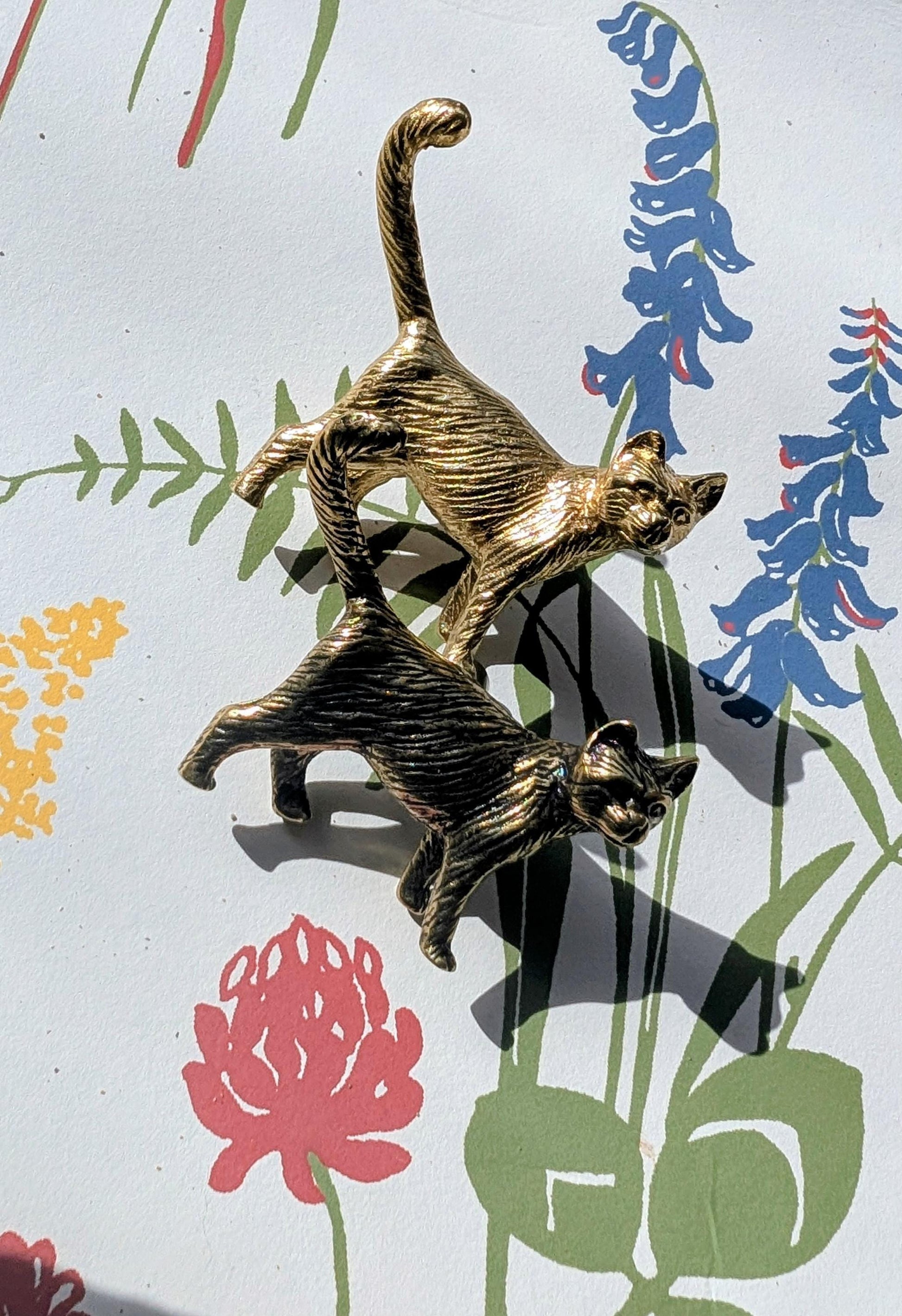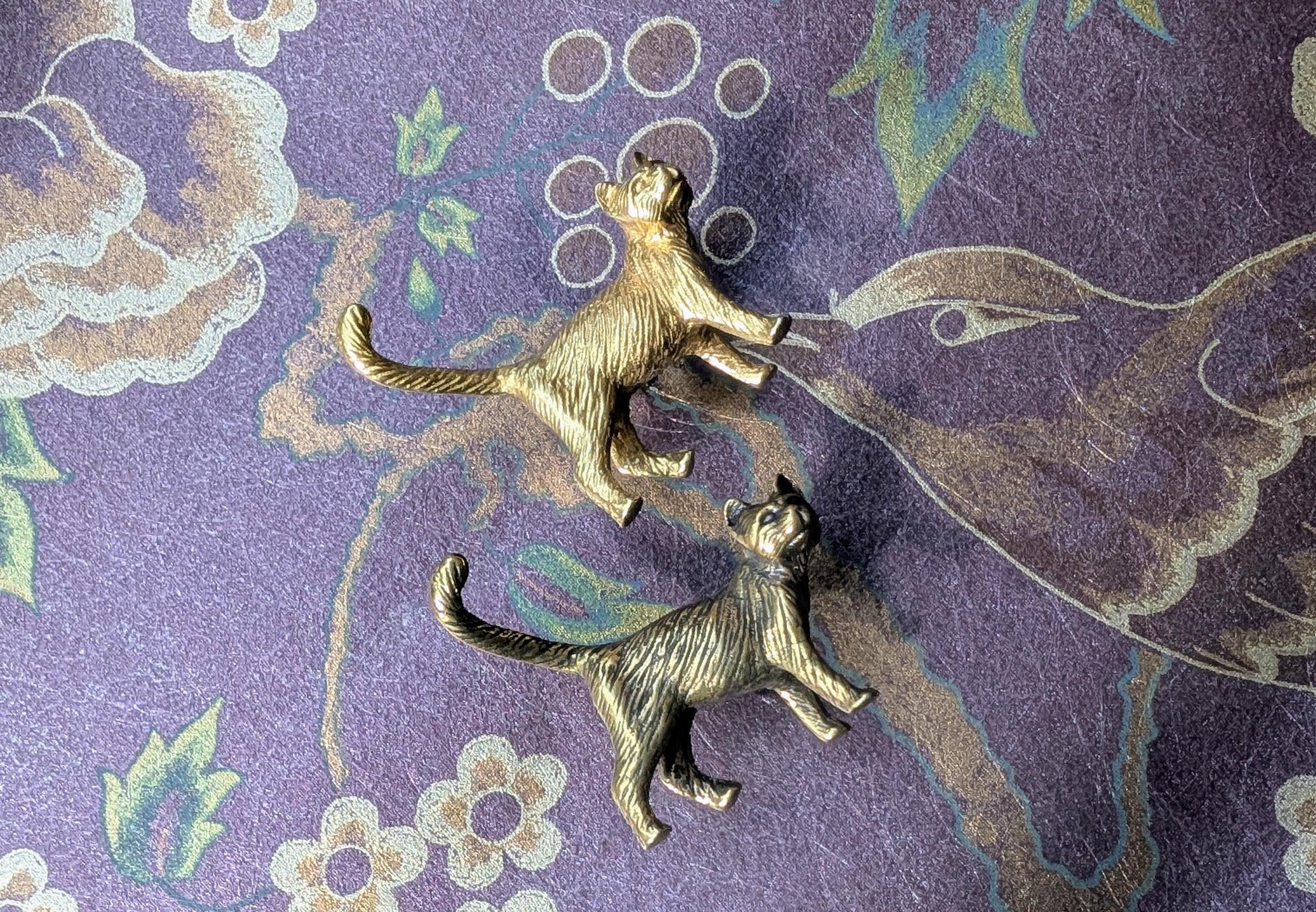 Each small handle is highly detailed. Perfect for cat lovers! Available in gold brass or antique bronze. Made from solid brass